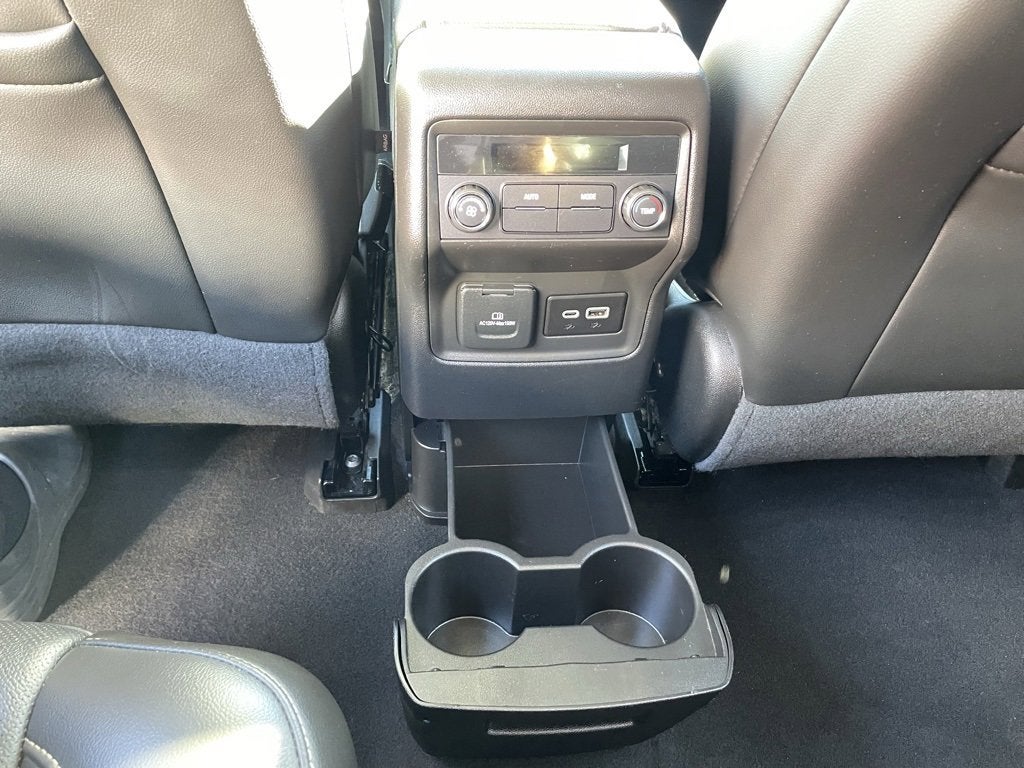 - Console, front center with 2 cup holders and storage, includes rear storage drawer